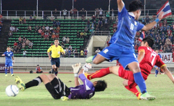 In the first half, Thailand had a freekick some five metres from the top of the box. But skipper Sansern ballooned the shot over the crossbar. Vietnam took charge from then on and did most of the attacking.