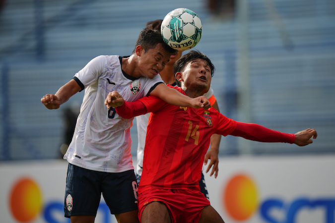 The sweltering heat did little to curb the enthusiasm of both teams as Myanmar’s Khun Kyaw Zin Hein tested Cambodian keeper Reth Ly Heng from a freekick early in the game.