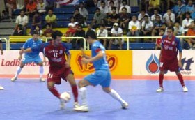 Anucha who has been a consistent performer for the national side, scored twice in the second and 30th minute before further goals from Jirawat Sornvichien (12th minute) and national team mate Kiatiyot Chaleamkhet (24th minute) gave them the full points. TOT only managed to score a goal in each half (Anuwat Patan in the second minute and Sermphan Kumthinkeaw in the 38th minute) for the loss as they slipped to fourth in the standings. In the meantime, a battling Port Authority of Thailand had to come back from being a goal down to RBAC’s early fifth minute strike from Natee Jipon to haul in the full points with a 6-4 victory. Ukrit Taengrtung’s seventh minute equalizer was just what Port Authority needed as they added further goals off Charnyuth Muangjun (8th minute), Alongkorn Pathumwong (14th minute), Surachai Boonrat (15th and 16th minute) and Wuttichai Thintawee (27th minute). The win has allowed Port Authority to maintain their position at the top of the table with just a point advantage over second-placed Chonburi Bluewave. Chonburi kept the pressure on Port Authority with an easy 8-3 beating of Nonthaburi. Krisda Wongkeaw started the ball rolling with the first goal in the second minute before scoring his second of the afternoon in the 16th minute. From then on, it was all Chonburi as Lertchai Issarasuwipakorn (14th and 34th minute), Surasak Arjeiam (25th minute), Sila Timtaeng (25th minute), Nattpol Suttiroj (33rd minute) and Willyan Christyanno (38th minute) all made the score sheet. Meanwhile, basement side Nakhornratchasima finally picked up their first point in the league this year when they held Samutrprakarn to a hard-fought 3-3 draw. A five minute blitz in the second-half – Paranya Nawicha 33rd minute, Charan Charnprecharat 37th minute and Yospol Tansuwan 38th minute – made sure that Nakhornratchasima do not end the league without even a single point to their name. CURRENT THAI FUTSAL LEAGUE 2007-2008 1. PORT AUTHORITY OF THAILAND 51pts (+61) 2. CHONBURI BLUE WAVE 50pts (+80) 3. CAT TELECOM FUTSAL CLUB 48pts (+74) 4. TOT 46pts (+80) 5. ROYAL THAI NAVY 25pts (+1) 6. BANGKOK 24pts (-16) 7. RBAC 22pts (-18) 8. NONTHABURI 22pts (-21) 9. SRIPATUM UNIVERSITY 20pts (-14) 10. SURATTHANI LIGHTNING SHRIMP 15pts (-42) 11. SAMUTPRAKARN FUTSAL CLUB 11pts (-44) 12. NAKHONRATCHASIMA 1pt (-137) PIC: TOT vs CAT TELECOM |