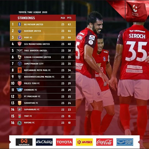 The win saw BG Pathum amassing 63 points from 23 matches played – 19 points ahead of second-placed Buriram who this week smashed Nakhon Ratchasima 3-0.