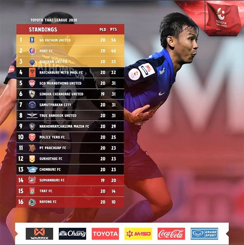 In the meantime, leader BG Pathum emerged victorious in the top-of-the-table clash when they edged Port FC 2-1.