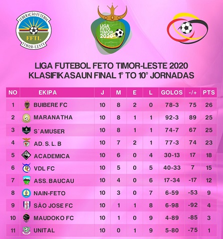 The three points won over Academica allowed Buibere to complete the season at the top of the 11-team FFTL Women’s Football League 2020 with 26 points.