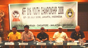 At the pre-tournament press conference this afternoon at the Hotel Sultan in Jakarta, the five team managers/coaches admitted to the importance of the championship but refused to be drawn into assessing their opponents. Bahrain’s team manager Omran Abdulla, whose team will begin their campaign against a confident Australian side, said that while the concentration is on the AFF meet, the ultimate target would be the AFC finals in Uzbekistan later in the year. “Our aim is of course to win the championship – after all, we travel all the way here not to be tourists,” said Omran. “This championship is part of our development programme where we came here after spending some time in Malaysia where we played two matches. “Certainly, this meet is an important continuous preparation for us (for Uzbekistan).” With the general consensus being that they are the firm favourites to win the tournament due to their physical advantage, Australian head coach Martyn Crook said that they are taking a more practical outlook instead. “We’ve had no international camp since last year although I will say that we are using this meet as a slow build-up to Uzbekistan,” added Martyn. “We are looking forward to the competition ahead but like Bahrain, we are focusing more on Uzbekistan and using this meet to better prepare our team.” With hosts Indonesia not taking to the field tomorrow, Singapore will be playing in the second game of the day against Malaysia. Singapore team manager Tay Peng Kee stated that the AFF U16 championship is an opportunity for his team to use as a benchmark for the AFC meet. “What’s lacking in the Asean region is an international youth tournament and that is why we are grateful for this meet,” added Peng Kee. “I know that size is an advantage (for Australia) but it is not everything and the fact is that at the last Lion City Cup, we only lost to Australia 1-0. So that is saying a lot.” Malaysian team manager Wan Erjunaidi Wan Mohamad said that the lack of a calibre youth tournament has forced them to go to Uzbekistan for matches. “We were in Uzbekistan before coming to Jakarta and just like it was there, this tournament is a chance for us to get the right exposure in preparation for the AFC meet,” added Erjunaidi. “It will be close against Singapore but I think that it will give us the right rhythm to kick start our campaign.” TOURNAMENT SCHEDULE and RESULTS 09/07/08 11/07/08 13/07/08 15/07/08 17/07/08 19/07/08 |