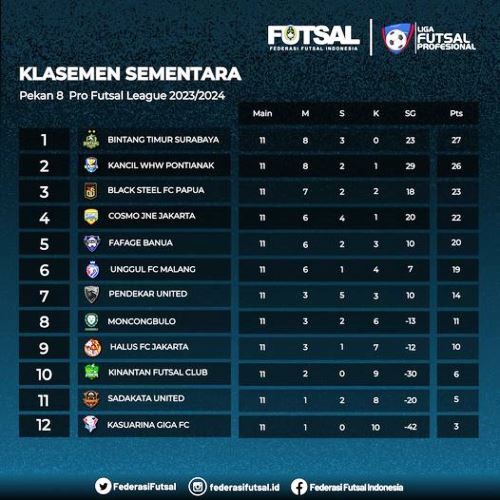 JAKARTA (23 January 2024) – Defending champions Bintang Timur Surabaya (BTS) remain undefeated in the Indonesia Pro Futsal League (PFL) 2023/24 after 11 matches into the new season.