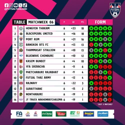 BANGKOK (5 August 2024) – Defending champions Hongyen Thakam are in control of the Futsal Thailand League 2024 as they maintained their place at the top of the standings after six matches played.