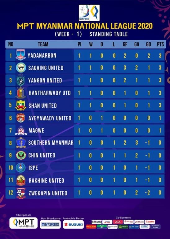 Elsewhere, Yangon United beat Chin United 2-1 at home as Hantharwady United edged Rakhine United 1-0 and Sagaing winning away 3-2 over Southern Myanmar.