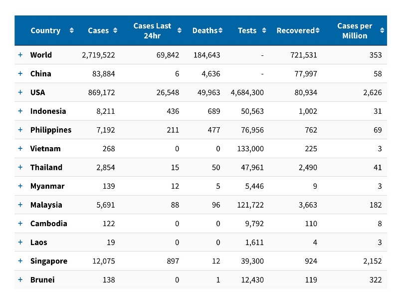 Four ASEAN countries – Vietnam, Cambodia, Laos and Brunei – continued to record no new infections.