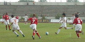 The Vietnamese, who had thumped both Philippines and Malaysia with identical 9-0 scores in their first two group matches, did not even have to go out of second gear to score five goals in the first before adding three more after the break. “We were lucky to draw three weak teams in our group – Philippines, Malaysia and Indonesia,” said Vietnam assistant coach Ngo Le Bang. ‘But it has its good points as well as the bad. The good thing is that we made the semi-finals with ease but the bad thing is that our team was not really challenged and that can be a problem in the semi-finals. “And in the semi-finals we will be up against Thailand which I’ve felt all along to be the favourites for this year’s title.” But credit should be given to the Indonesian girls where they stood hard and fast in the opening half hour to frustrate Vietnam and prevent them from putting the ball into the net. In slippery conditions and in front of some 1,000 ardent fans, Vietnam finally turned the scoring machine for Bui Thi Tuyet Mai to head in the cross from Le Thi Hong Nga in the 31st minute. That goal proved pivotal as Indonesia became increasingly under pressure to concede their second goal two minutes later when Tran Thi Kim Hong to beat marker Doris before slamming the ball home. An own goal later from Doris allowed Vietnam to be more brazen to add two further goals just before the break off Bui Thi and Le Thi Hong Nga. The second half saw Vietnam stepping off the gas a little to score only three goals from Le Thi Hong Nga and a second own goal from Indonesia’s Maesaroh for the final score line. In the other Group A match, the two goals Malaysia scored in the first half was good enough to steer them into the semifinals. Skipper Angela Kais, in the fifth minute, curled the freekick around the wall and watched in delight as it dipped into the top corner, well beyond the reach of keeper Nadia Galang. Elizabeth Oyau doubled the score when she worked her way into the box, rounded the keeper and squeezed the ball between the defenders in the 31st minute. After the break, especially in the last 15 minutes,it was the Philippines all the way. They changed their game plan and began to pressure the Malaysians. With five minutes to go, Marilou Rubio, from outside the box, blasted towards goal and Nur Atiqa Lilia fumbled when retrieving the ball and it fell behind her into goal. “The main thing is that we have achieved our target of making the next round. I salute our defenders who played very well especially in the second half when our opponents intensified their attacks,” said Malaysian coach Mohd Shah Alias Norbit. “A mistake resulted in the goal we conceded, maybe it was due to some loss of concentration,” he said. Philippines assistant coach, Alfredo Rey Lores, congratulated Malaysia. “They played better today while we had another occassion where we played well in one half,” he said referring to the match against Indonesia which they led 2-0 in the first half but eventually lost 3-2. INDONESIA: Dorthe Kristina Rollo, Syane Stevelin Korwa, Ludia Ohee, Dopimina Kogoya, Katrina Wakur, Yunita Silver Nere, Konstantin Deda, Jenny Merlin Yansip, Astri Marice Ohee, Lenora Deda, Doris. VIETNAM: Dang Thi Kieu Trinh, Nguyen Thi Nga, Nguyen Thi Thanh Huyen, Nguyen Thi Kim Tien, Tran Thi Kim Hong, Bui Thi Thuyet Mai, Nguyen Thi Chang, Doan Thi Kim Chi, Le Thi Thuong, Le Thi Hong Nga, Nguyen Thi Minh Nguyet. PIC: Vietnam (in white) against Indonesia (in red) FINAL GROUP A STANDING 1. VIETNAM 9pts (+26); 2. MALAYSIA 6pts (-6); 3. Indonesia 3pts (-9); 4. Philippines 0pt (-11) |