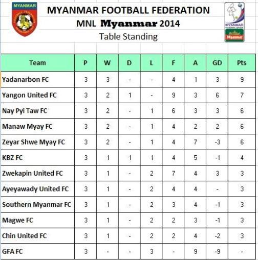 In the meantime, defending champions Yangon United roasted Zeyar Shwe Myay 6-1 with Cesar Augusto scoring four goals. The win was Yangon’s second in three matches after beating Manaw Myay 2-1 and then drawing Kanbawza 1-1.
