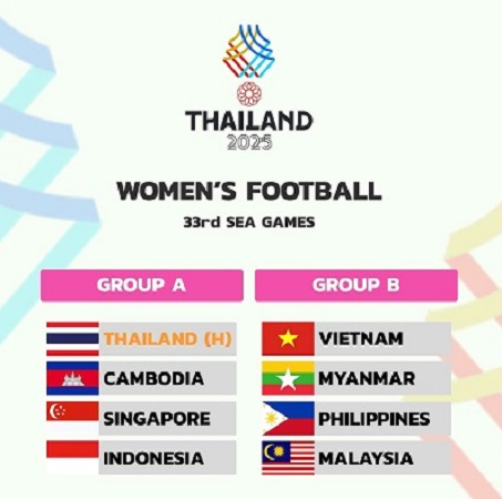 In Women’s Football, host Thailand are in Group A against Cambodia, Singapore and Indonesia.