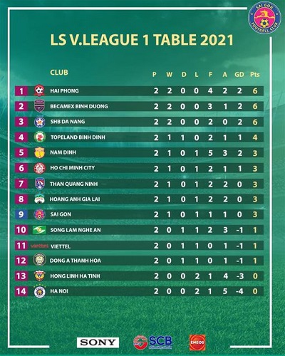 In the meantime, Becamex Binh Duong occupy the second spot at the table with the same six points from two matches played.