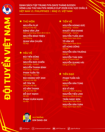 HANOI (28 May 2024) – Newly appointed Vietnam head coach Kim Sang-sik has called up a handful of new faces into the squad of 27 players preparing for the team’s final two Group F second-round qualifiers for the FIFA World Cup 2026.