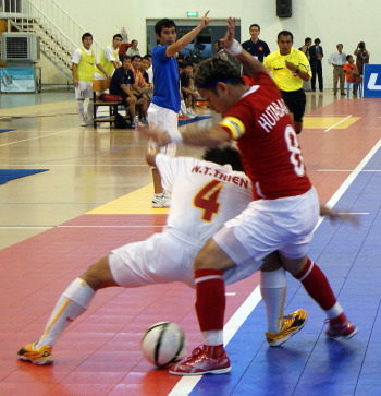The score in the first half was 1-0 to the advantage of Vietnam. “Vietnam played very well but we relied on the quick counter-attacks to get back at them and that paid off in the second half. It is a nice feeling to be in the final,” said Robby Hartono, the head coach for Indonesia. Buoyed by several thousand fans, Vietnam started strongly with the lanky Ngo Duy Khanh making several attempts at the Indonesian goal at the start of the tie. Indonesia were not without their chances too with Angga Saputra and Socrates Matulessy breaking through the Vietnam defence only to come up against the experienced Dang Phuoc Anh at goal. But while Indonesia were busy pushing forward, Vietnam finally carved their first goal of the game in the 18th minute when Huyhn Ba Tuan blasted in the goal off a short pass from Truong Quoc Tuan. Indonesia had a great chance for the equaliser just several seconds later but they just could not make full use of a three-against-one situation when Phuoc Anh recovered the attempt from Sayan Karmadi. The second half would prove pivotal as Indonesia minimised their mistakes at the back to push Vietnam much into their own half. And after some continued pressure afterwards, they finally found the goal they were looking for and the much sought after equaliser when Phuoc Anh swept the ball into his own net in his attempt to clear a goal mouth melee. Four minutes later, Indonesia went in front for the first time in the game when Sayan was in the thick of a quick counter attack manoeuvre to score from close range after a square from Indra Kurnia. “We were just a little inexperienced. We were already in front and we should have played a smarter game. Now, there is no choice but to beat Malaysia next,“ said Vietnam head coach Sergio Gargelli. In the meantime, Malaysia gave themselves a lifeline for a place in the final this year when they beat Myanmar 2-0 in an earlier match. “It is a small lifeline for us but we are still not playing at a level which I know we are capable of. Now we have to prepare for the crucial game against Vietnam tomorrow,” added Hamidin Mohd Amin, the Malaysian team manager. Battered by the heavy defeat to Indonesia the previous day, the Malaysians were all eager against Myanmar in the opening first quarter. But even with the wily Addie Azwan Zainal leading the attack, the Malaysians could not find their way through the Myanmar defence as the latter relied on quick counter-attacks in their search for the first goal. For Myanmar, they must have realised that it was not going to be their afternoon when they struck the Malaysian posts three times in the first half alone. But some sustained pressure from Aye Min Win forced Addie into making several untimely decisions and by the 17th minute of play, he was sent off after picking up his second yellow card – although this time round for entering the court improperly when making a substitution. However, that was to be the turn for Malaysia as they duly scored the first goal of the game when Mohd Khairul Effendy Bahrin capitalised on some hesitant defending on the part of Myanmar to slot the ball home. And just one minute into the second half, Malaysia went 2-0 up when Mohd Khairul finished a rebound to complete his brace. “It was an even game considering that we hit the posts three times in the first half. But I thought that the referee made some decisions against us and that costs us the game,” quipped Myanmar team manager Yei Htut Tin. RESULTS and FIXTURES 5 April 2010: MALAYSIA 5 PHILIPPINES 3/ VIETNAM 8 MYANMAR 1 6 April 2010: PHILIPPINES 0 VIETNAM 4/ INDONESIA 7 MYANMAR 4 7 April 2010: INDONESIA 6 MALAYSIA 0/ PHILIPPINES 5 MYANMAR 2 8 April 2010: MALAYSIA 2 MYANMAR 0/ VIETNAM 1 INDONESIA 2 9 April 2010: Philippines vs. Indonesia (1400)/ Vietnam vs. Malaysia (1600) 10 April 2010: REST DAY 11 April 2010: Winner vs. Runner-up (1600) |