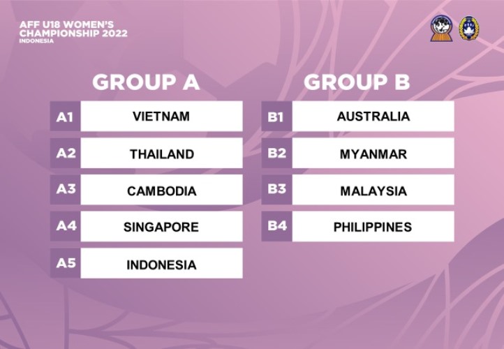 Group A are Vietnam, Thailand, Cambodia, Singapore and Indonesia while Group B are Australia, Myanmar, Malaysia and the Philippines.