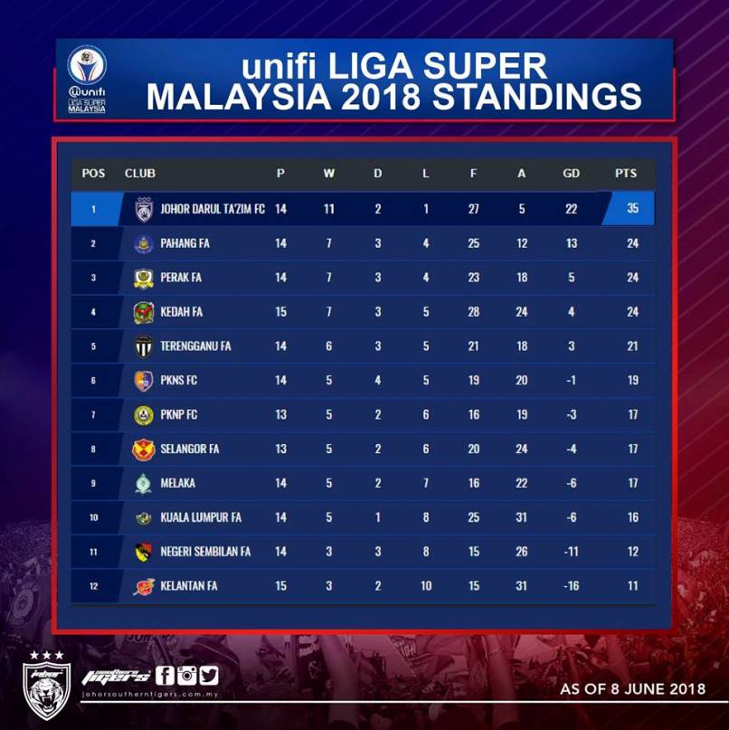 The top of the table clash left JDT with 35 points after 14 matches while second-placed Pahang has 24 from the same number of matches.
