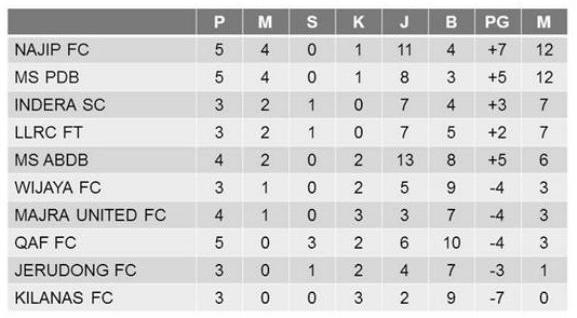 With their full three points for their fourth victory in five matches, MS PDB are on the same 12 points with Najip, but on lesser goal difference.