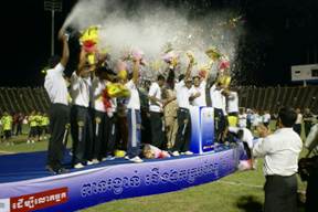 With the title already in the bag, Naga Corp certainly did not put in any of the stops against second-placed Khemara in the second half of the tie after taking just a 1-0 lead at the break off Teap Vathanak in the 38th minute. Two quick goals within the space of just four minutes from Pich Seyha in the 72nd and 76th minute was just what they needed to coast to another win as they added two further goals off Eang Saknida in the 82nd minute and Chhim Sambo deep in injury time for the final scoreline. Khemara’s only goal of the afternoon came off Kuoch Sokomphiak two minutes to the end to confirm their place as the runner-up team for the 2007 season. Third in the league was Phnom Penh Empire FC who regained some measure of respect after having to come back from being two-goals down before winning 3-2 over Build Bright University. Prum Puth Sithy scored a brace (7th and 26th minute) for Build Bright to take a 2-0 at the break before Empire stormed back into the game with a hat-trick (55th, 84th and 85th minute) from Chan Chhaya for the win. FINAL CAMBODIAN PREMIER LEAGUE STANDINGS 1. NAGA CORP 38 pts (+69) 2. KHEMARA KEILA 30pts (+37) 3. PHNOM PENH EMPIRE 29pts (+41) 4. ROYAL CAMBODIAN ARMED FORCE 17pts (+12) 5. BUILD BRIGHT UNIVERSITY 16pts (-6) 6. RED EAGLE 16pts (-11) 7. LION SQUAD 14pts (-19) 8. BAKSEY CHAMKRONG 3pts (-120) |