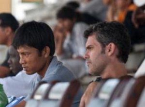 And the three have certainly not wasted time as they have been consistently on the lookout for players in the on-going Cambodian Premier League 2009. “Both Piseth and Dary were with me before (in 2007),“ said O’Donell. “I trust and respect them. Both were national team players and have a good knowledge of the game, and we already have a mutual understanding of what we want to achieve.” Van Piseth, 47, was a former Cambodian international in the mid-1980s and played his football for the most part with the Army team before beginning his coaching career at Khemara FC. He is due to take his AFC C-Licence coaching certificate next month. The 23-year-old Bouy Dary on the other hand was the assistant to former national coach Prak Sovannara, and is one of the younger generation of coaches in Cambodia. He played under O’Donell at the SEA Games in 2005 whilst with the Royal Navy team, and already has his C-Licence. “The next stage is to get a squad together, with the SEA Games in Laos in December as the next major challenge,” added O’Donell. “I want to put on a series of trials for around 40 players in the last three weeks of July at the National Olympic Stadium, with a view to sizing it down to a squad of 25 players. “Then I’d like to get the squad with me a couple of times a week during August and September, which is why I met with the CPL coaches a couple of weeks ago, as I need their cooperation. “I’d be concentrating on their technical and tactical awareness rather than their stamina until the end of the current season.” The 42-year-old Australian is also looking to further strengthen his squad’s preparation for the SEA Games in Laos with a couple of friendly international matches and two training camps away in South Korea and Vietnam. PIX: Bouy Dary (left) with Scott O’Donnell (right) at a Cambodia Premier League match. |