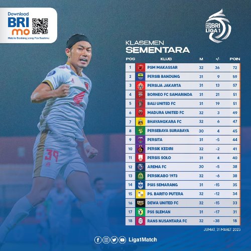 JAKARTA (1 April 2023) – A 3-1 win over Madura United earlier this evening was enough for PSM Makassar to be declared champions of the 2022/23 BRI Liga 1 – with two matches still to play.