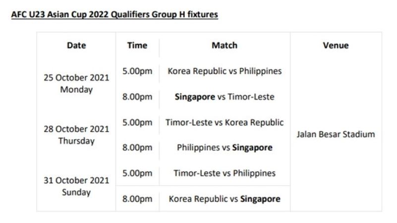 In line with the prevailing COVID-19 safe management measures, a maximum of 1,000 spectators will be allowed in the stadium for each match. Tickets went on sale on Wednesday and more information can be found at www.fas.org.sg/tickets.