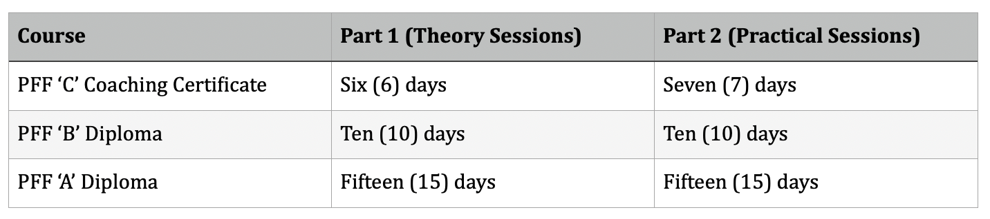 Interested applicants may contact the PFF Coaching Education Department at pff.coachingeducation@gmail.com for more information regarding the PFF Coaching Courses.