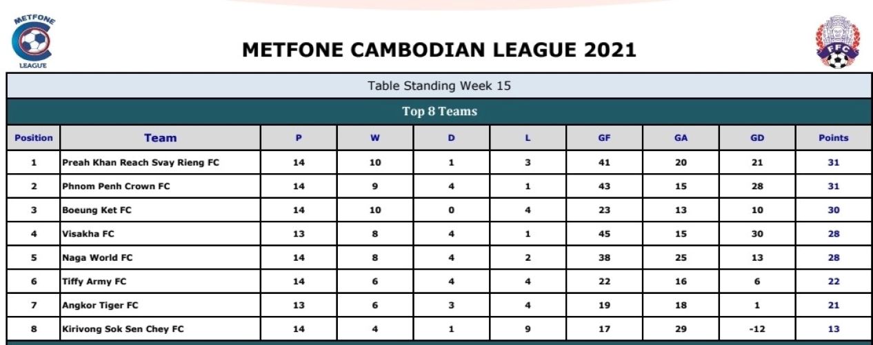 The win saw Crown moving up to second in the standings as Visakha FC, who did not play in mid-week, slipped down to fourth.