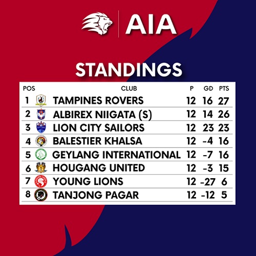 In the meantime, third-placed Lion City Sailors swept aside Young Lions 4-0 to keep up the pressure at the top of the standings.