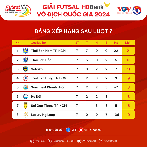 HO MINH CITY (21 June 2024) – Thai Son Nam, Ho Chi Minh City FC took the first-round lead at the end of the seventh match day of the HDBank National Futsal Championship 2024.