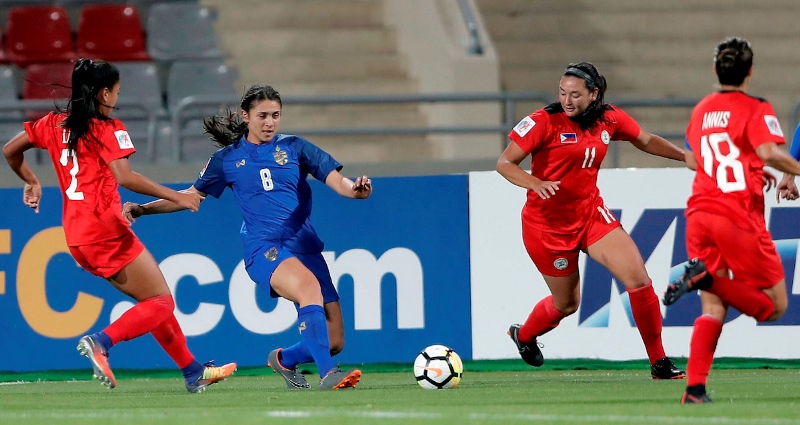 BANGKOK (13 April 2018) – Thailand made the cut for their second successive FIFA Women’s World Cup when they beat the Philippines 3-1 in their final and crucial game of Group A at the King Abdullah II Stadium.