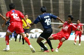 Preah Khan put up quite a resistant in the first half to be scoreless but there was just no stopping Khemara from winning the full points when Tunjiayoyinka scored twice (88th and 89th minute) within the space of just two minutes late in the game. The win has allowed Khemara to stay on third with 15 points while Preah Khan are on fifth with 14 points. In the meantime, Naga Corp FC stumbled to a 2-1 loss to Kirivong Sok Sen Chey FC to remain in mid-table. Despite taking a 1-0 lead in the 23rd minute off Chego Ikiapi, Naga failed to stop Kirivong from stealing the three points with goals off Him Salam in the 36th minute and another from C. H. Chibuke seven minutes after the restart. CURRENT CAMBODIA PREMIER LEAGUE 2008 STANDINGS 1. PHNOM PENH EMPIRE FC 24pts (+12) 2. BUILD BRIGHT UNITED 17pts (+10) 3. KHEMARA KEILA FC 15pts (+5) 4. NATIONAL DEFENSE MINISTRY FC 14pts (+4) 5. PREAH KHAN REACH 14pts (+1) 6. NAGA CORP FC 13pts (+4) 7. KIRIVONG SOK SEN CHEY FC 11pts (-3) 8. MOHA GARUDA FC 10pts (-7) 9. PHUCHUNG NEAK FC 8pts (-10) 10. INTRY KRAHAM-POST FC 3pts (-16) PIC: Kirivong (in red kit) vs Naga Corp (in blue) |