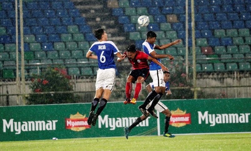 YANGON (4 Sept 2017) – It was a bruiser of a match as Singapore overcame Cambodia 5-3 in the late game of the evening in Group A at the Thuwunna Stadium which saw the rain mercilessly pouring throughout the encounter.