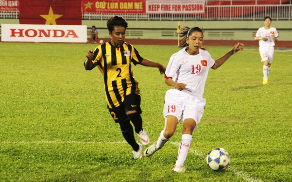 HO CHI MINH CITY (4 May 2015) – Malaysia tried hard but in the end Vietnam proved to be too hot to handle as the hosts romped to an easy 7-0 win in the second match of Group B of the AFF Women’s Championship here tonight at the Thong Nhat Stadium.