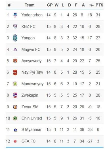 Zeyar has been slipping down the standings since the start of the month and where after picking up just one point on the weekend saw them being placed ninth out of the 12-team table.
